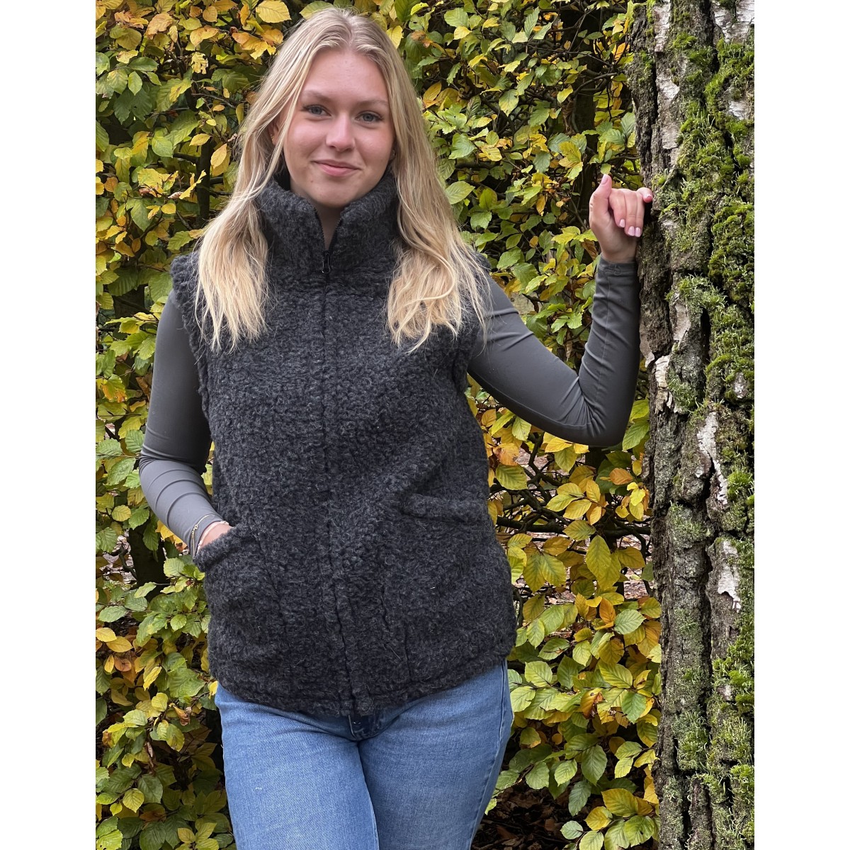 I har taget så godt imod vores nye vest i 100% merino uld, og vi forstår jer godt. Vesten har en lige pasform. Modellen har høj krave, så du kan beskytte halsen mod kulde og holde dig varm. Den er anvendelig med påsyede lommer. Vesten har en 2-vejs gennemgående lynlås, hvilket giver bevægelsesfrihed og øger fleksibiliteten, da du kan justere vestens åbning fra enten toppen eller bunden af vesten. Brug vesten over en sweater, når du har brug for ekstra varme, f.eks. når du er i haven, ude at gå med hunden, under eller over en jakke, eller når der skal slappes af til en god film på sofaen. Mulighederne er uendelige. Vesten er unisex og kan anvendes af både damer og herrer. Vesten findes også i råhvid. Farve: Koksgrå Størrelsesguide: Se venligst foto.